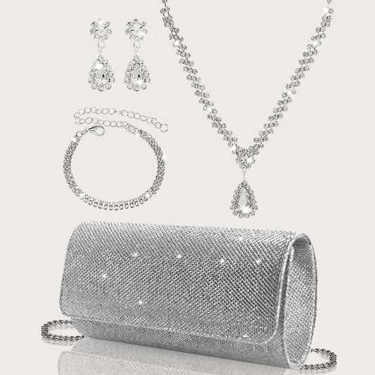 Sophisticated and Elegant Sparkly Party Clutches and Wallets Paired with Luxe Rhinestone Necklace, Earrings and Bracelet Sets. (051)