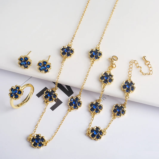 Snowflake Crystal New Design Plant Five Leaf Flower Jewelry Set Cute Zircon Women'S Bracelet Necklace Earring Ring Gift Clover (116)