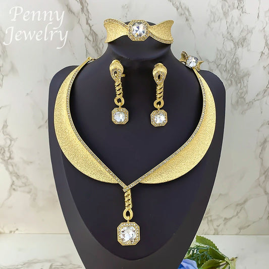 Shining Brilliant Cubic Zircon 4Pcs Bridal Set for Women Fashion Wedding Zircon CZ Dubai Bridal Jewelry Set N-06 (029)