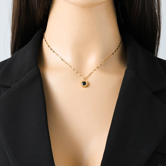 Roman Black Zircon Necklace Bracelet Earrings Set for Women 316L Stainless Steel Hypoallergenic Waterproof Jewelry Gift (030)