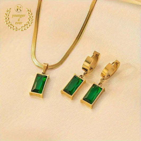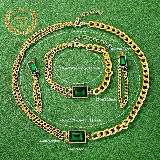 Golden Stainless Steel Flat Chain Square Necklace Earrings