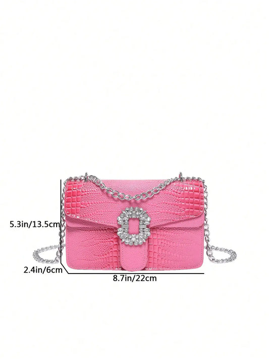 Crocodile Embossed Shoulder Bags for Women Flap PU Leather Fashion Rhinestone Decor Small Square Crossbody Bag Designer Handbag (016)