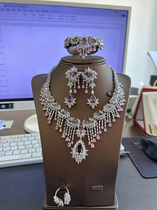 4 Pieces of Ultra Luxury Cubic Zirconia Bridal Party Costumes, Dubai Bridal Jewelry Set Accessories, Nigeria (017)