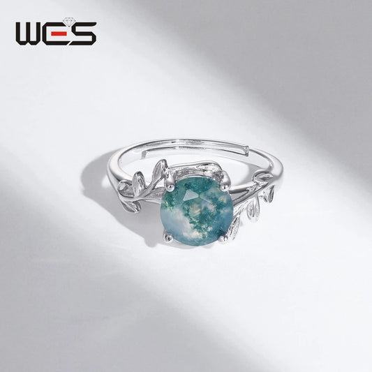 925 Sterling Silver Natural Gemstone 8*8Mm Moss Agate Jewelry Set for Women with Box Olive Branch Wholesale Wedding Gift (90)