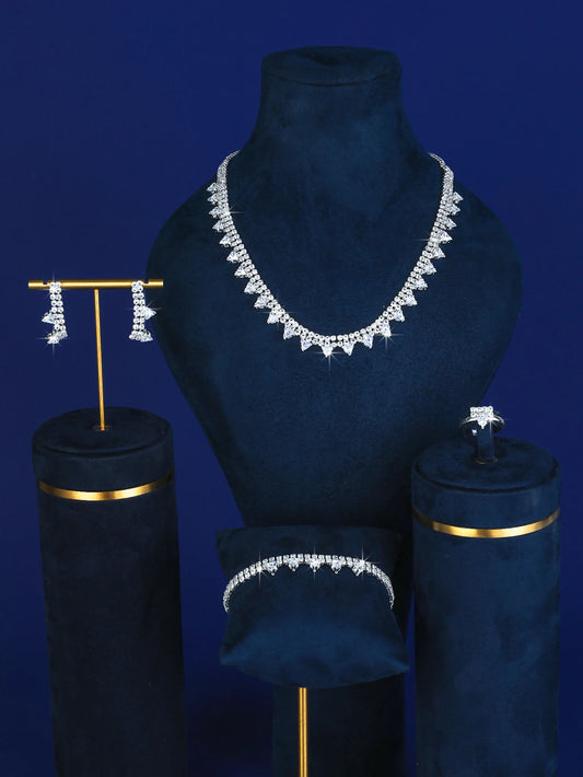 Dazzling Women Wedding ry Set 4 PCS Ring Earring Bracelet Necklace Cubic Zirconia Bridal lery Accessories High Quality (104)
