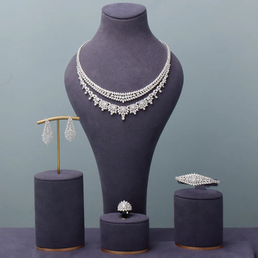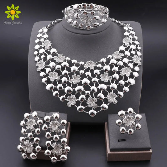 Elegant Jewelry Sets Dubai Silver Plated Jewelry Women Necklace Bracelet Earrings Ring Bride Wedding Party Accessories (105)