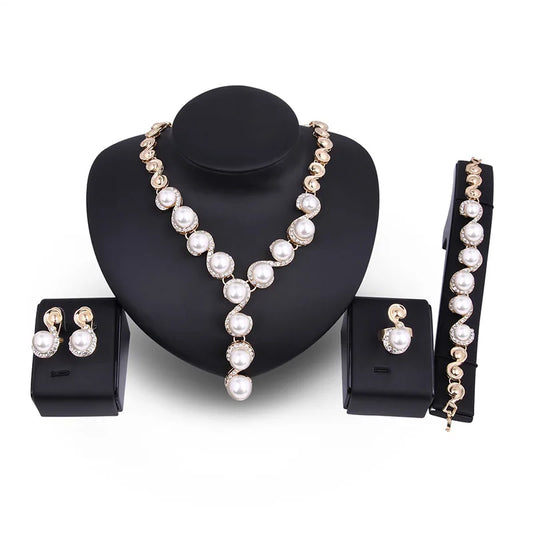 5 PCS Women'S Metal Jewelry Set Pearl Necklace Earring Bracelet Set Holiday Party Jewelry Bridal Wedding Jewelry (114)
