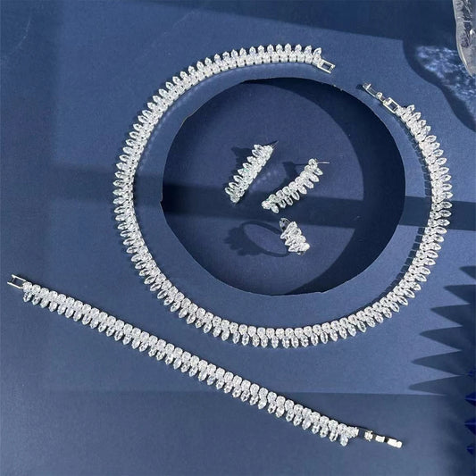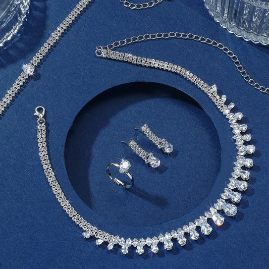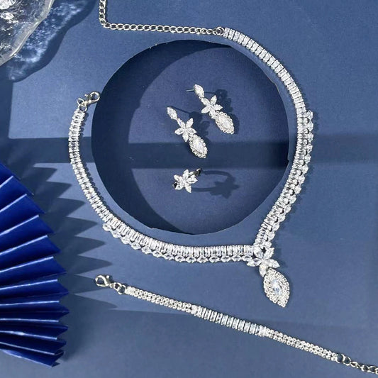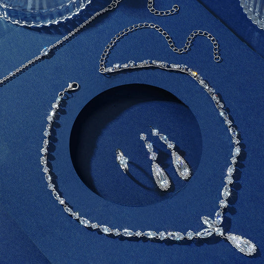 High Quality Cubic Zirconia Bridal Jewelry Sets Fashion Water Drop Necklace Lady Pendant 4Piece Set Wedding Party N-1464 (106)