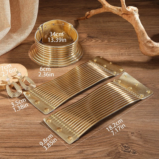 5Pcs/Set Vintage Leather African Jewelry Set Choker Necklace Bracelet Earrings Set for Women Collar Necklace Set Jewelry Gifts (120)