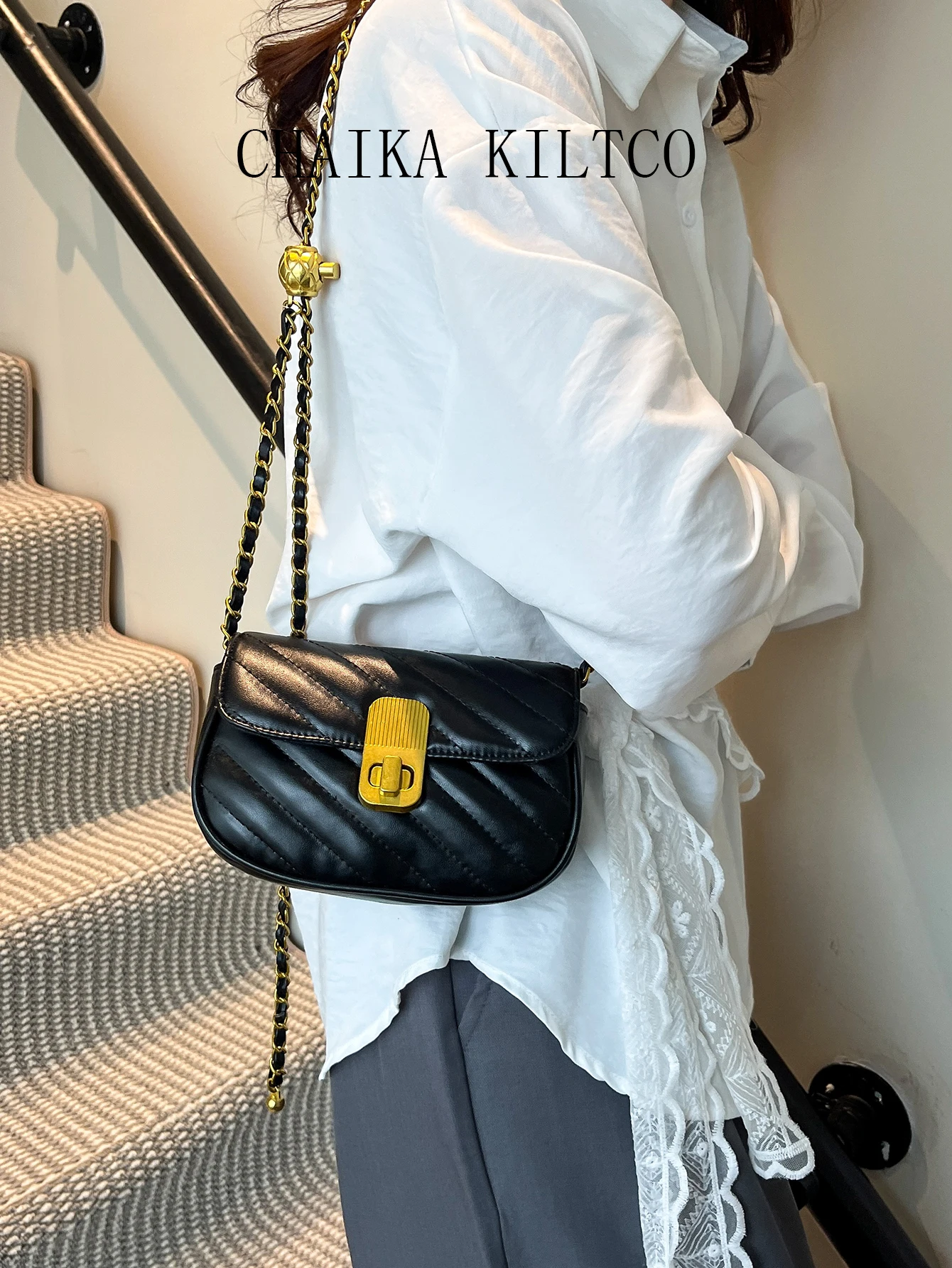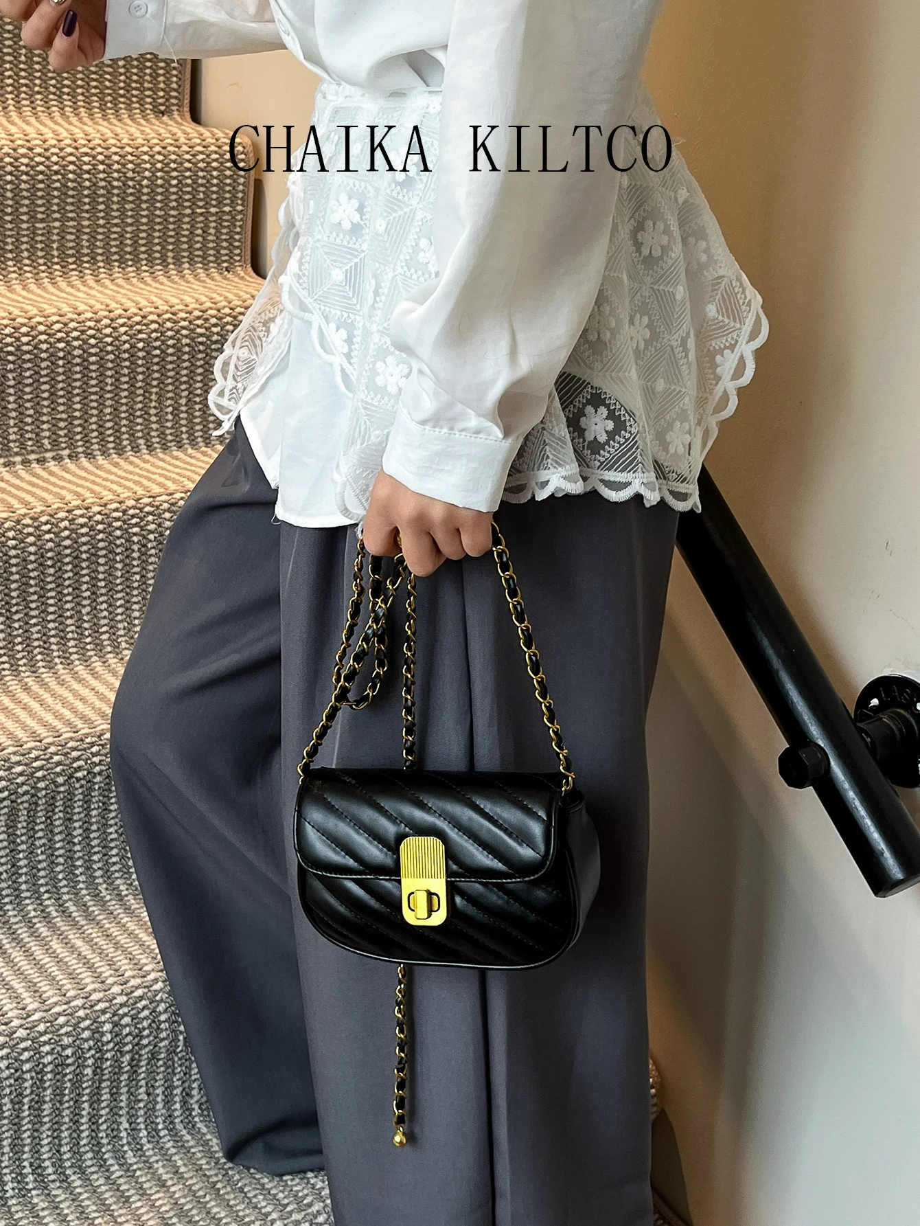 CHAIKA KILTCO Xiaoxiangfeng Diamond Grid Chain Bag 2025 New Single Shoulder Crossbody Bag Fashionable and Versatile Texture Bag (012)