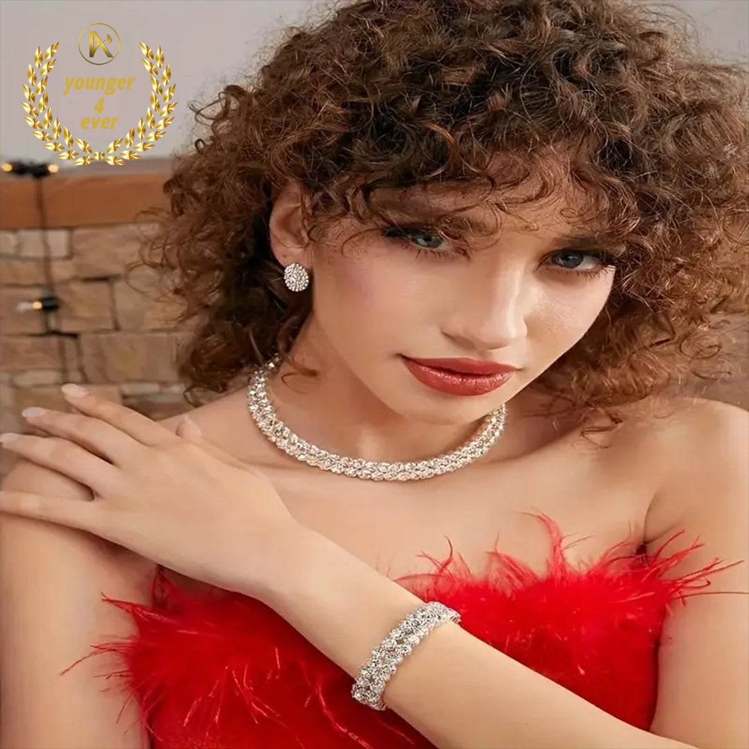 Jewelry Trio Set - Shimmering Rhinestone Silver Plated Earrings, Necklace and Bracelet Collection for Daily Wear, Parties, and Special Occasions with Elegant Design and Durable Construction