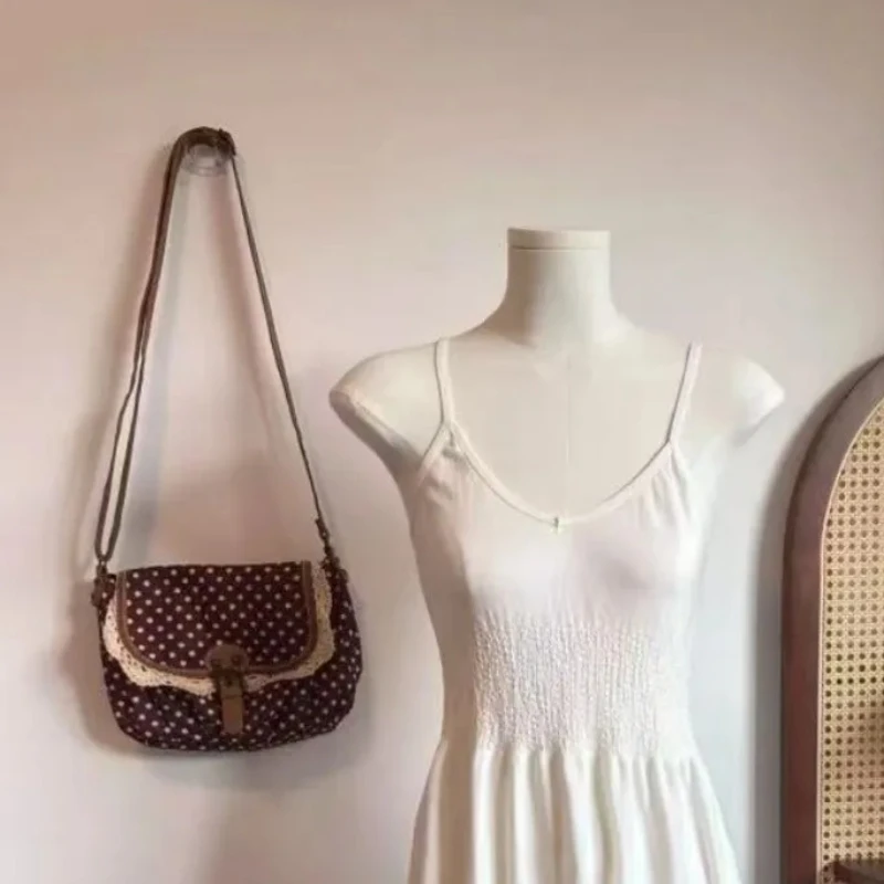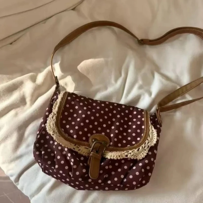 New Korean Polka Dot Niche Design Vintage Women'S Single Shoulder Crossbody Bags Fashion Polka Dot Canvas Bag (053)