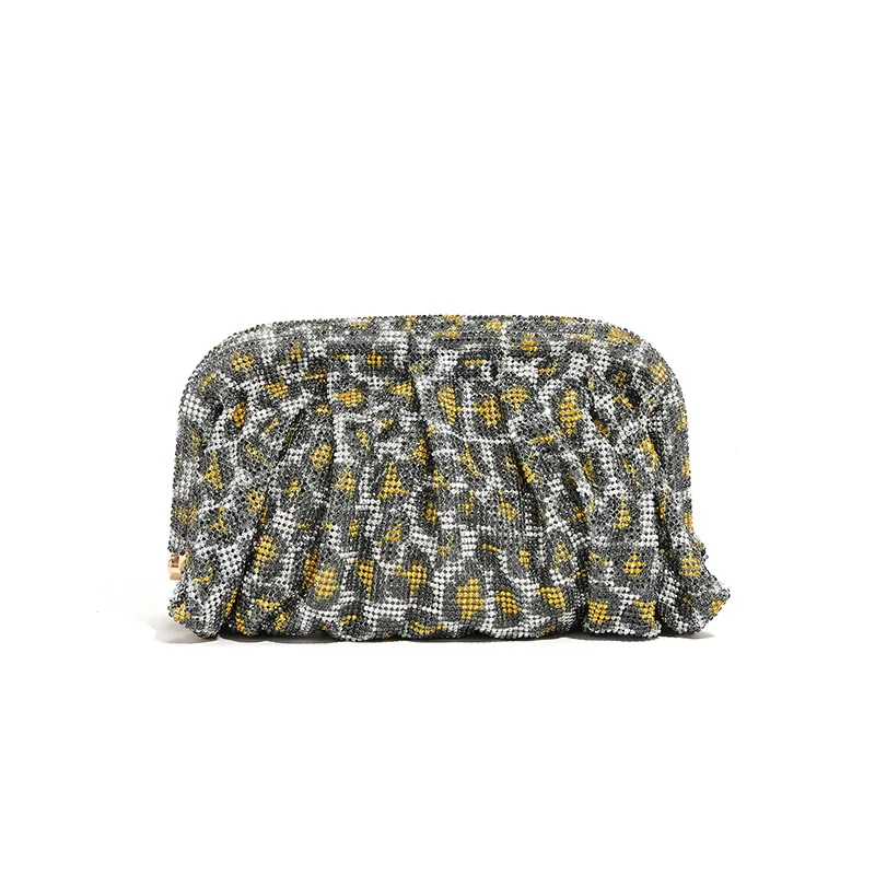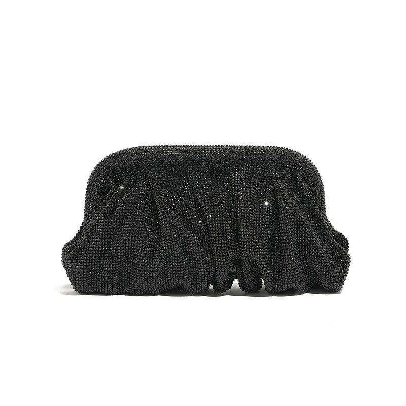 Shinny Ruched Rhinestone Clucth Purse Women Luxury Designer Evening Bags Fashion Party Dinner Handbag Bridal Makeup Bag (001)
