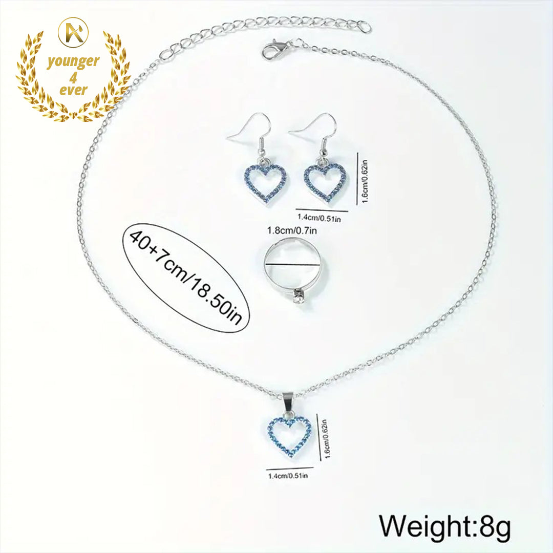 Stunning Blue Round Rhinestone Accented Quartz Watch Set - Alloy Strap, Pointer, and Case with Matching Rhinestone Necklace, Earrings, and Ring Jewelry for Women - Elegant Timepiece and Accessories Bundle