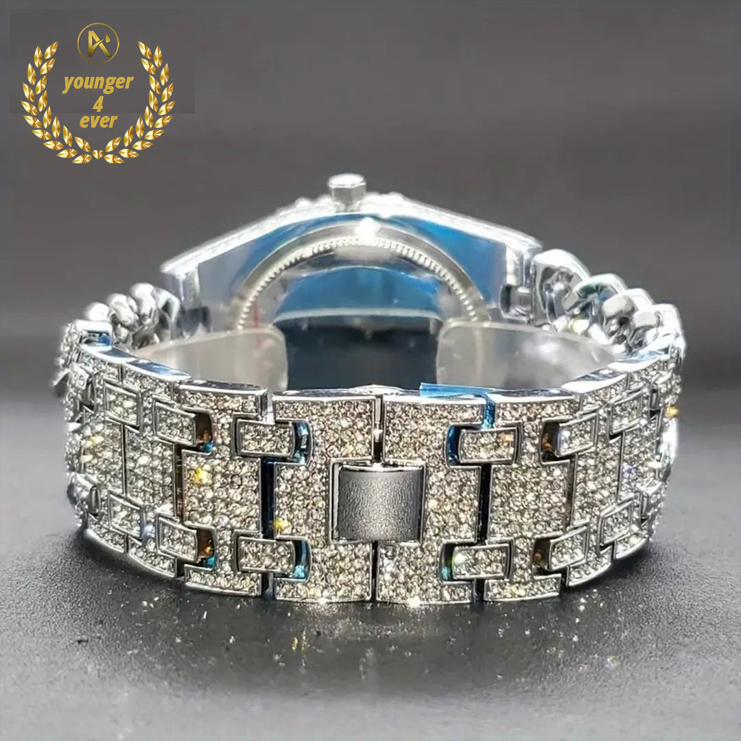 Stylish Rhinestone Quartz Watch for Men - Accurate Calendar Function, Water-Resistant, Luxury Fashion Timepiece with Unique Trendy Design - Perfect for Formal and Casual Occasions