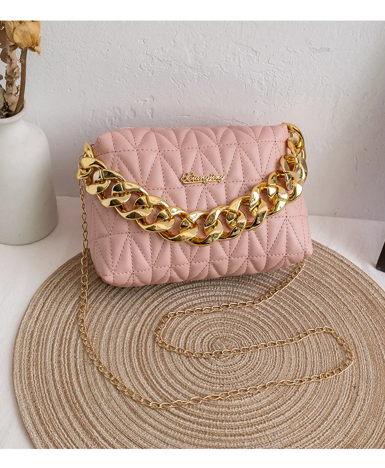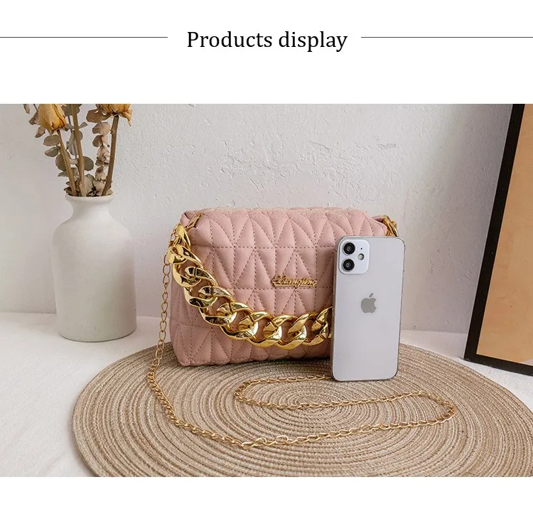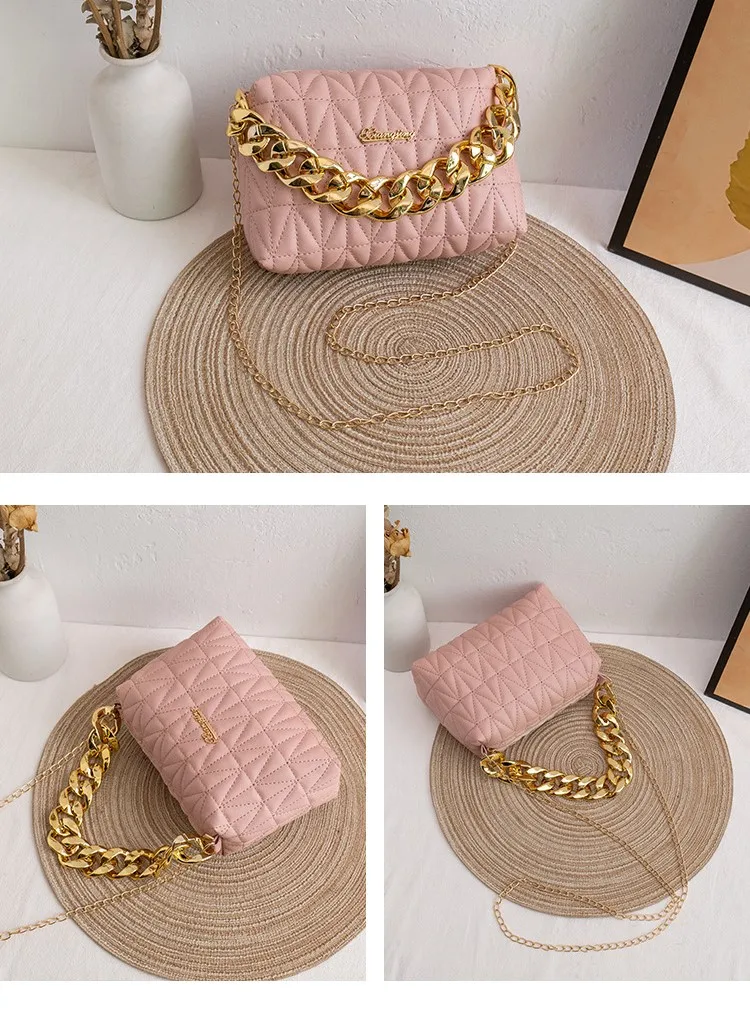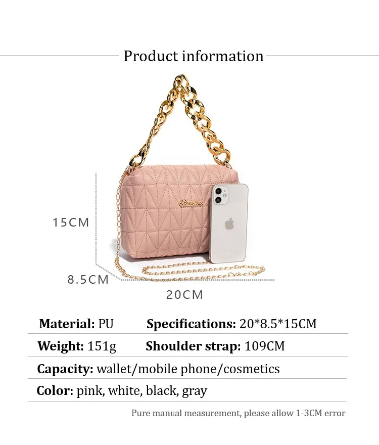 Women Bag Chain Handbag Solid Color New Fashion Shoulder Messenger Crossbody Bag Retro Diamond Small Square Bag Purse (025)